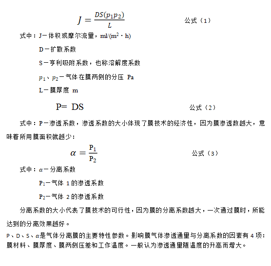 氣體透過(guò)膜的流量計(jì)算公式如下: