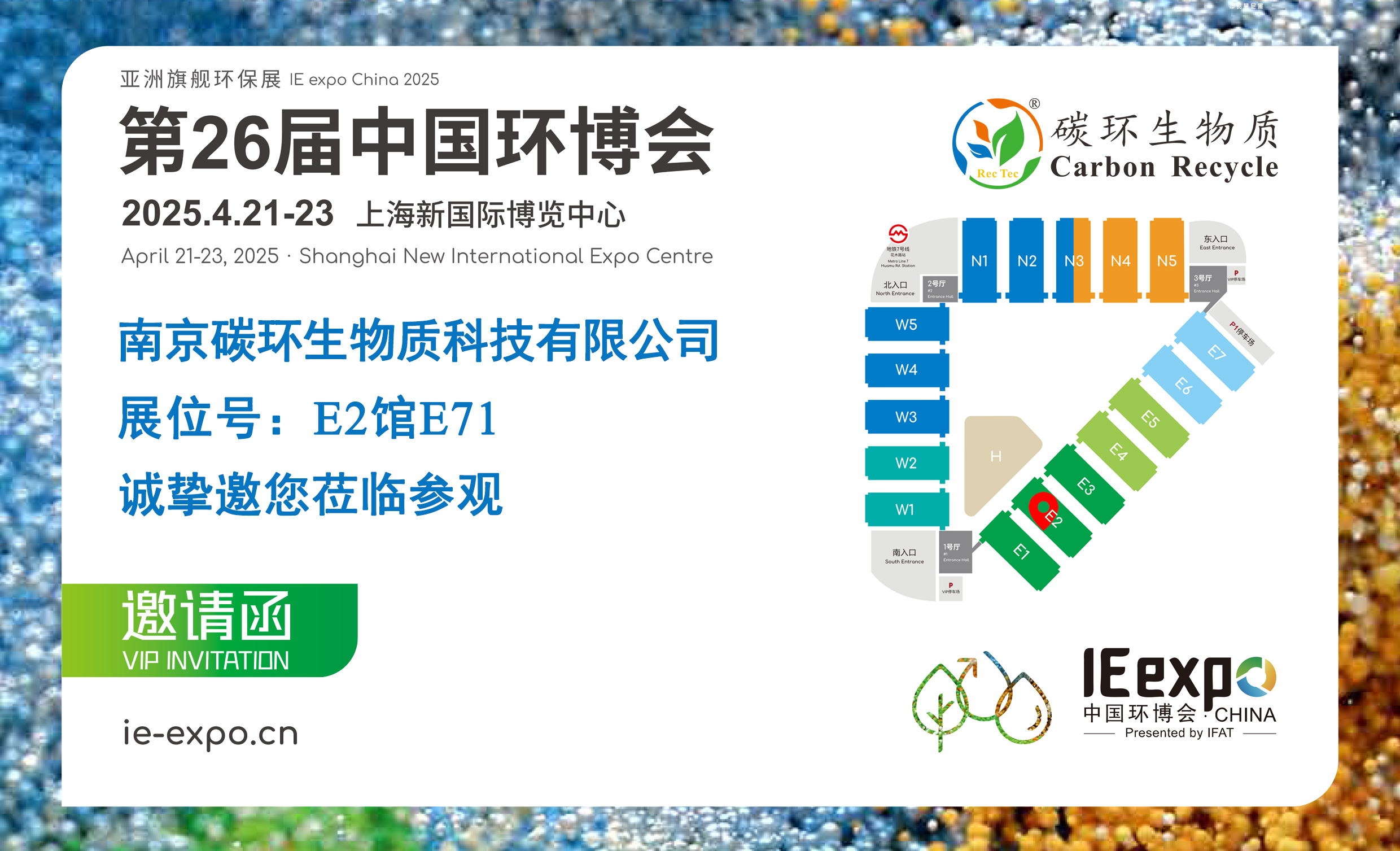南京碳環(huán)生物質(zhì)科技有限公司將于2025年4月21-23日在上海新國際博覽中心參加第26屆中國環(huán)博會(huì)(IEexpo China 2025),誠摯邀請(qǐng)您蒞臨參觀。