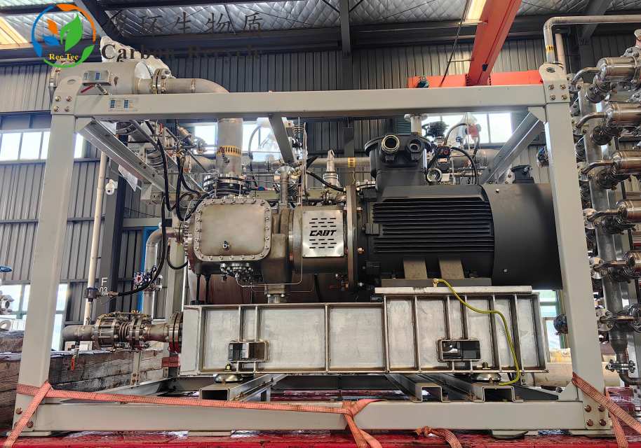 壓縮單元選用的無油單螺桿壓縮機,系統(tǒng)采用去離子水潤滑,潔凈、無油,機頭的容積效率(Max)≥95%,與介質接觸的殼體、轉子、軸承座、蓋板、緊固螺栓等金屬部件均采用316L不銹鋼材料制造。螺桿及星輪片使用SINUMERIK數(shù)控加工軟件,由五軸聯(lián)動加工中心加工制造,殼體由臥式加工中心加工。且使用三坐標測量儀進行形位公差檢測,確保加工精度。螺桿曲面輪廓度為±0.01mm,粗糙度,螺桿及星輪不平衡度優(yōu)于G1級。壓縮機的嚙合副加工精度高,磨損小,振動小,噪音低。